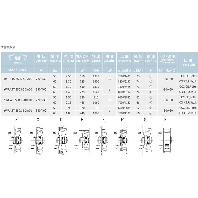 YWF.A4T-550S-5DIA00全新三木馬爾微光外轉子軸流風機