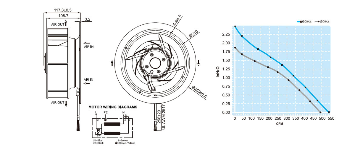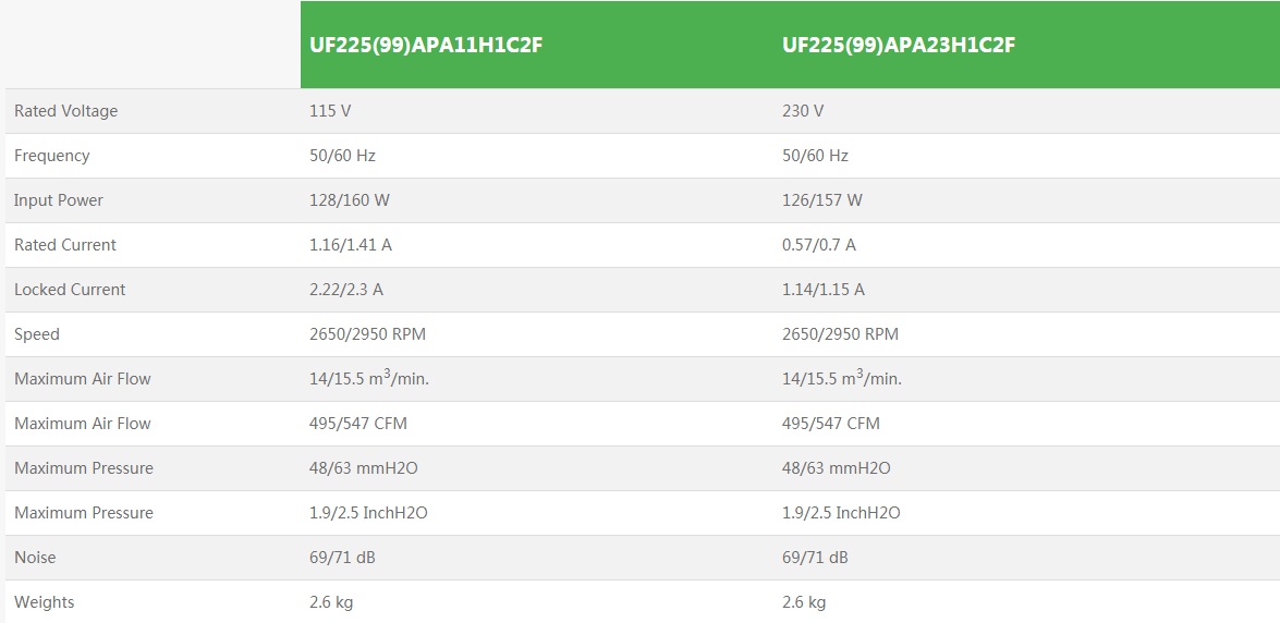 2. UF225(99)APA全新原裝臺(tái)灣正品福佑小型離心風(fēng)機(jī)排煙機(jī)蝸殼注塑機(jī)變頻器散熱