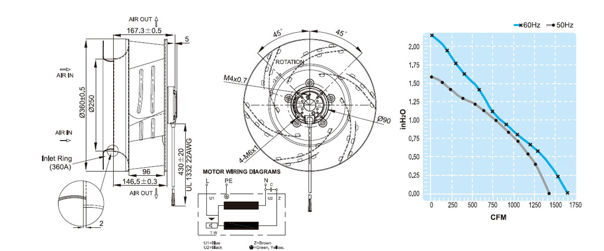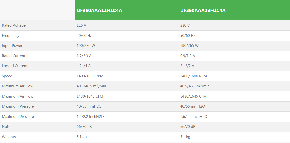 2. UF400AAA23H1C4A原裝臺灣進口離心風機管道空氣凈化器變頻器散熱